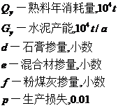 物料平衡计算以粉磨站年产量为基准,根据粉磨站年产量计算出工厂每小时和每天的水泥产量。其它各种物料的每小时、每天和每年的需要量,均按照该物料的单位熟料消耗定额进行计算。