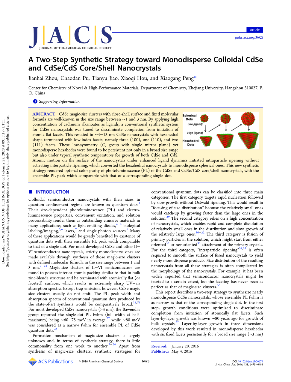 Jianhai Zhou, Chaodan Pu, Tianyu Jiao, Xiaoqi Hou, and Xiaogang Peng*