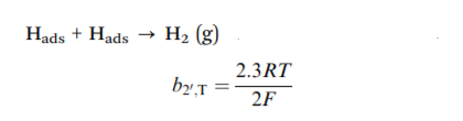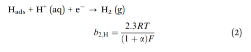 然而,在相对较高的Hads覆盖率下,相邻吸附氢原子之间的重组占主导地位,这被称为塔菲尔反应,也称为化学解吸步骤: