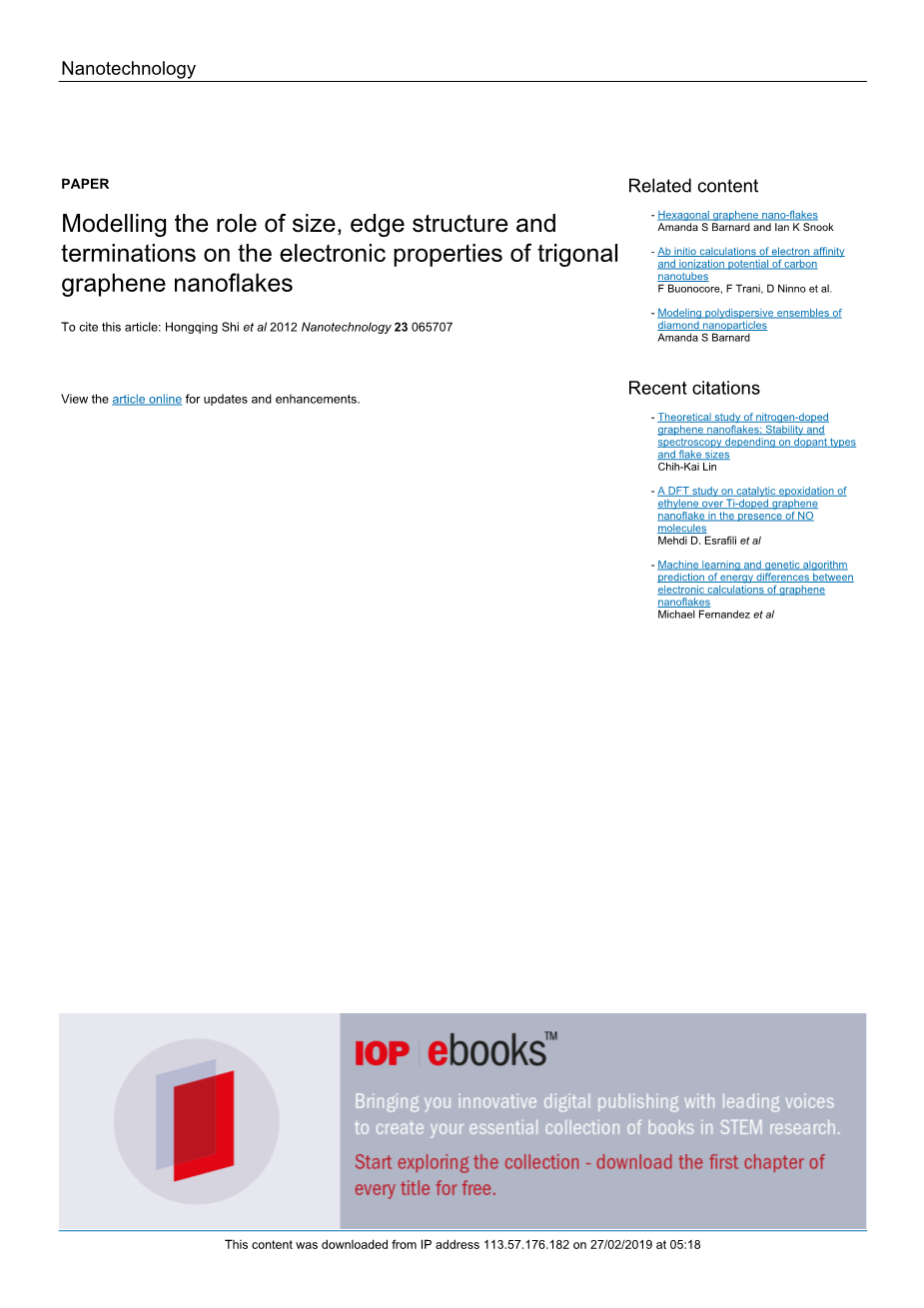如前所述,基于密度-功能紧密结合模拟,最近报道了一项关于六角石墨烯纳米片的研究,其中六角石墨烯纳米片具有未端接、单氢化物或二氢化物测定的ZZ和AC边角。虽然本研究的优势在于使用仅具有zz或ac边缘的一组结构(有效地分离尺寸/形状/结构相关性),但它仅限于钝角,无法探测锐角情况下的性能。因此,在这项工作中我们进行了补充,三角形石墨烯纳米薄片(来自22或918个原子)增量组的可比仿真系列,也仅用AC或ZZ边缘端接。这在费米能级附近引起了不同的重构、热力学稳定性和电子态,并研究了苯型单氢化物终端或环己烷型二氢化物终端对边角的影响。特别地,我们发现交流边角在特性色散、转移费米能量、带隙、电离势和电子亲和力中起着重要作用。