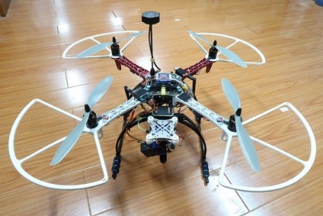 系统所使用的四轴无人机采用了大疆科技(DJI)设计的F450机架,其良好的拓展性允许安装多种复杂的传感器与外设。动力系统部分采用朗宇科技X2216KV1100直流无刷电机,搭配大疆科技9450桨叶能够提供单颗电机最大650g的升力。电池采用4200mAh锂电池,充满电后能输出12.6V电压,为满载飞行器提供20分钟左右的续航时间。飞控使用了匿名科创(Ano Tech)设计的拓空者飞控,该飞控核心为一块STM32F407VGT6处理器,提供了强大的性能冗余[9]。同时飞控上集成了多种传感器,包括高性能气压计SPL06、高性能惯性传感器ICM20602、高精度磁罗盘AK8975;这些传感器全部采用SPI通信方式,数据读取波特率达到10Mbit/s,大幅提升了飞控性能。并且由于这些IMU传感器精度的提升,四轴无人机在惯性导航方式下的零点漂移得到了抑制,能够实现良好的惯性定点、气压定高效果,但仍然不可避免的存在因为传感器校准问题而带来的飞行器漂移。同时,飞控板上预留了多组串口,可以用于连接UBLOX M8N GPS模块实现几乎没有漂移的精确的定点和悬停;也可以连接无线通信模块实现无人机飞行状态信息的读取、飞行任务命令的发送等功能。基于模块化的思想,搭载于公版架构机架上的硬件全部可以单独进行更换,保证了系统良好的移植性与可维护性。由于核心飞控源码开源,基于飞控的二次开发得以实现,可以在安全飞行的基础上定制不同的功能;同时源码会定期升级更新,保证了飞行的安全,减少因为代码漏洞而引起事故的可能。无人机开发平台整体如图2.1所示。