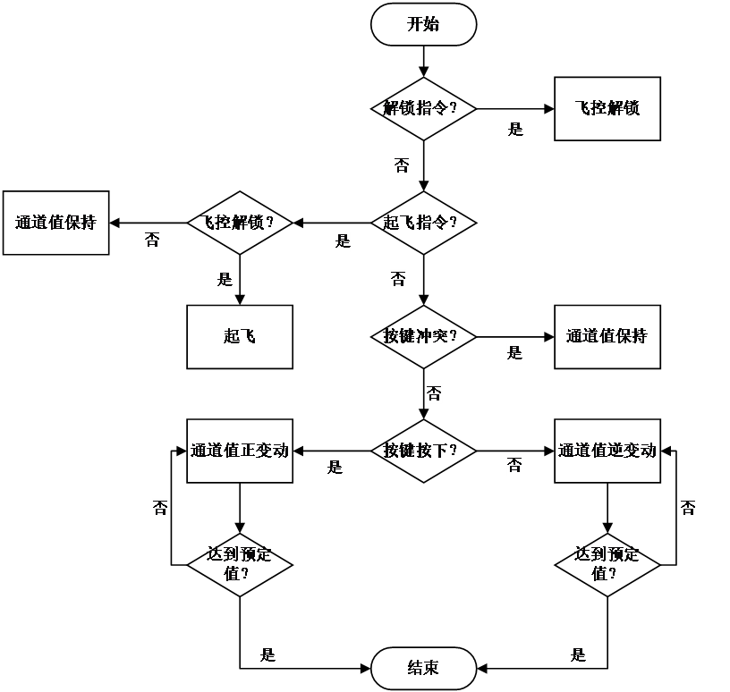 This thesis proposes a four-axis UAV remote control module built using STM32 microcontroller, which can communicate wirelessly with PC. Through the PC host computer program control, the drone can complete the take-off, translation flight, steering and other flight missions. Combined with the OpenCV-based image processing algorithm, the host computer can remotely control the drone to complete the automatic landing task. Compared with the traditional remote control system of the UAV, the remote control system proposed in this paper can not only be compatible with the traditional operation mode, but also can be switched to the program-controlled flight mode, making the drone operation more precise and safe, and controlling multiple UAVs at the same time possible. The results obtained in the thesis have important guiding significance for the improvement of the drone control mode and the development of the application field. The thesis mainly studies the design of the wireless remote control module of the drone, the development of the corresponding embedded program and instruction set, and the design of the image processing algorithm.