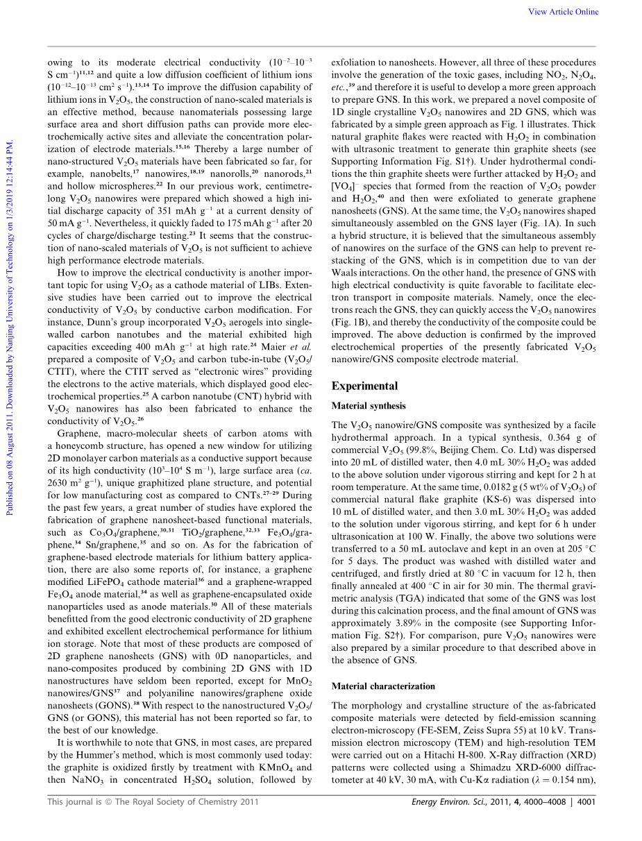 简易绿色法制备超长V2O5单晶纳米线/石墨烯复合材料及其储锂性能外文翻译资料