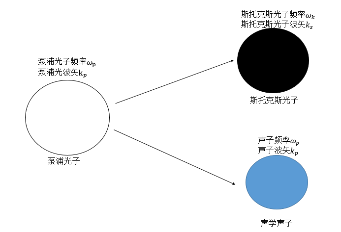 分别为声子、入射光子和斯托克斯光子的波矢量。声波角频率