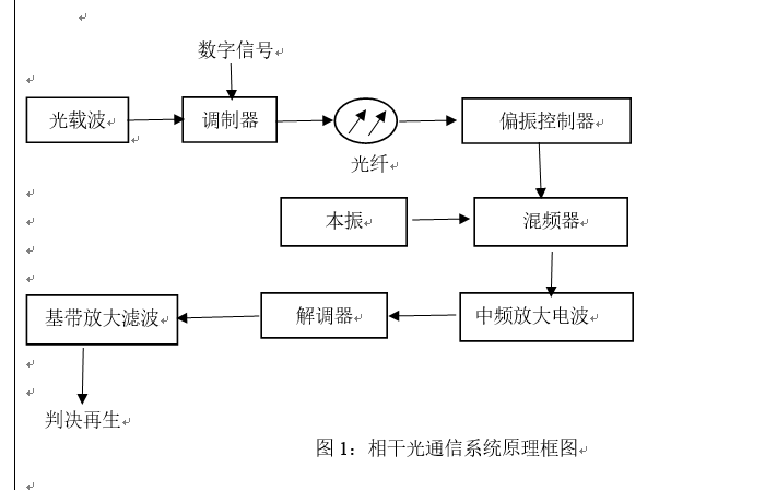 光接收机的任务是把发送端通过光纤传来的微弱光信号检测出来,然后放大再生成原来的电信号。对光接收机的基本要求是:应具有较高的灵敏度,以适应长距离通信的要求;应具有较大的动态范围,以适应各种通信距离的要求。光接收机作为光纤通信系统的关键器件之一,其性能直接影响系统的传输距离和误码率等传输指标。其中相干接收机具灵敏度高,中继距离长,选择性好,通信容量大,具有多种调制方式等众多优点,因此具有良好的应用有前景。