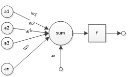 神经网络最重要的概念之一是称之为神经元的节点,每个节点可以看成是一个输出函数,这个输出函数在神经网络里面有另外一个名字:激励函数。节点之间的数字代表连接信号的权值,权值是用来抽象出神经网络的记忆。不同的权值和不同的激励函数构成不同的网络结构,网络结构可以是对某种复杂的函数或者算法的逼近,也可以是一种逻辑策略的数学阐述,如图2.1所示。而网络输出则取决于网络结构。