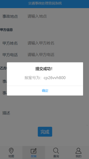 Based on the actual research, this paper uses the B/S three-tier architecture to design the system. The front end adopts the popular MVVC framework—Vue. The back end adopts the same popular Express, and the database adopts MySQL management. It is designed for the traffic management department. A set of traffic accident check query system was implemented. The system includes four major function modules: upload accident, accident inquiry, map inquiry and personal center. The system has the following three main features: