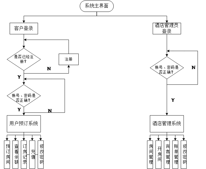 同时我们在预订管理子模块我们设想提供一个用户中心给客户,方便客户查看自己的余额、订房记录、修改登陆密码等功能。酒店后台管理系统可以通过用户注册功能获取用户的基本信息,从而实现了客户入住酒店的自动登记。