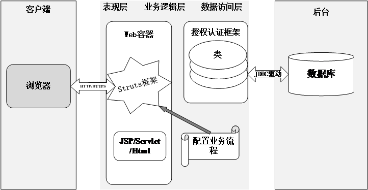 本文所涉及的系统在经过参考一些现行的商务酒店的系统模式之后,我们决定了系统的模式采用J2EE框架下的B/S模式来搭建,在此模式下用户只需要通过手机或者PC端访问浏览器的系统相关网址就可以登录使用该系统。