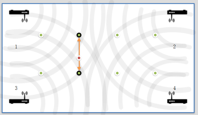 (2)UWB定位技术:这种定位方法用的是时间到达的不同来给两个物体进行标记, 运用UWB 设备测得定位标记上的带宽扩展到两个不同AP之间无线电信号传播的时间之差,然后根据简单的距离算法公式就可以知道定位物体标价相对于四组AP的距离之差。