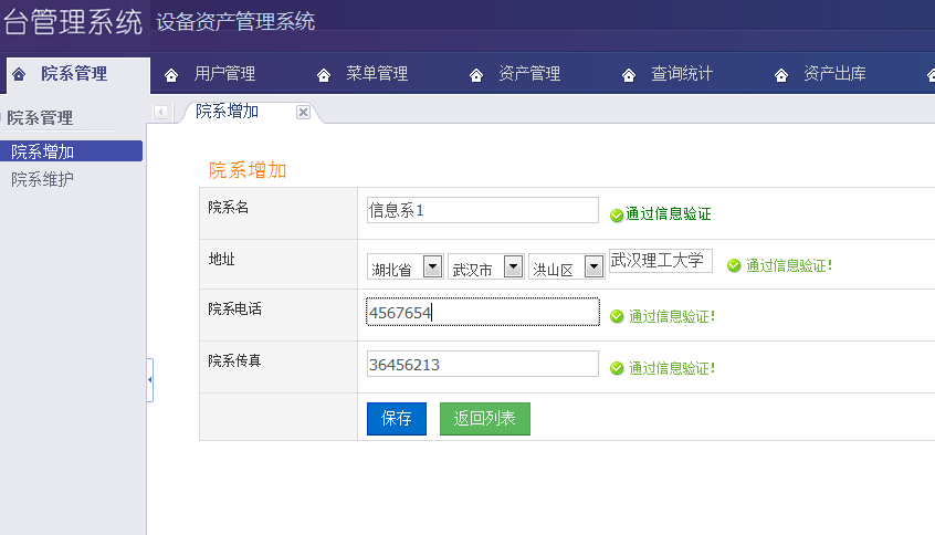 This design uses popular JSP technology, Servlet technology and MySQL database to develop a system with information management function. The management system is designed based on B/S mode, realizing the separation of front and back end of the system, and can manage the system back end without changing the front end. Besides login function, the functions of management system mainly include user management, Department management, asset management, query and statistical reports, asset warehousing processing, menu management and other functional modules. The system basically completes the core functions, which can display the main page in browser, realize the equipment asset management and user information management after login verification, and query the equipment report information. It can interact with the background database information, and all the data information of the system will be stored in MySQL database. This equipment management system can not only collect equipment assets management information efficiently and quickly, but also ensure the security and reliability of information data, so as to realize information-based equipment assets management for colleges and universities.