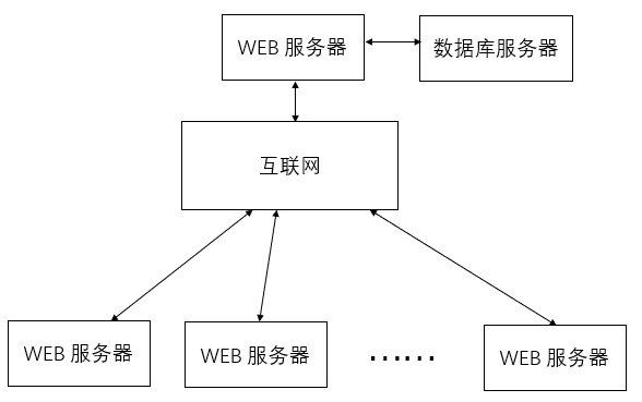 由于主要面向广域网的使用,因此需要采用B/S模式,因为JAVA语言有着与平台无关的编译特性错误!未找到引用源。,因此采用JAVA作为编译语言来完成这个平台的编写。在设计上采用MVC模式,这样可以使后期的维护更方便[6]。 MySQL与SQLServer相比,虽然SQLServer可扩展性更强,安全性更高,但是MySQL适用于所有平台,而且是开源软件,版本更新快,价格也相对低廉,因此选用MySQL数据库。B/S结构示意图如图2.5所示。