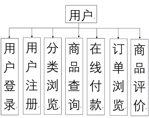 对用户应该提供登录功能以及注册功能,新用户完成注册后即可登录商城进行购物操作。用户模块用例图如图2.2所示。