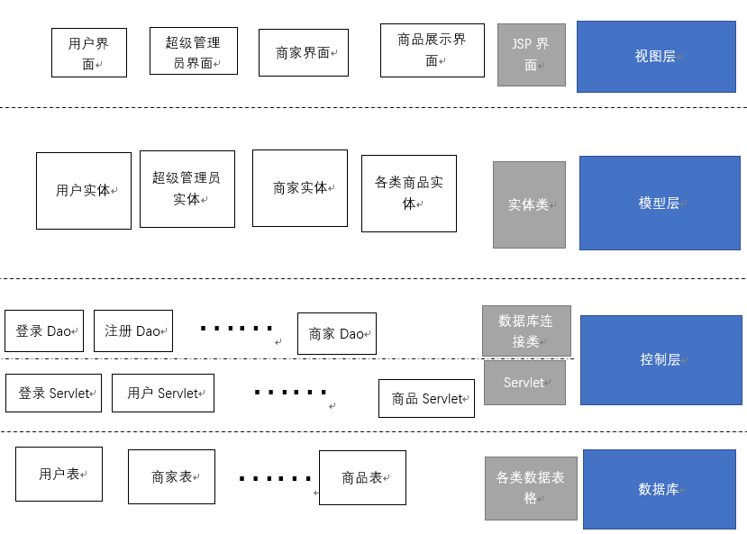 第三章主要描述购物平台的设计过程,在设计上采用了分层设计的理念,并将各模块单独设计,每个模块的功能仅在该模块实现,而每一个层的功能只在该层内实现,这样极大的便利了接下来的调试与维护工作。