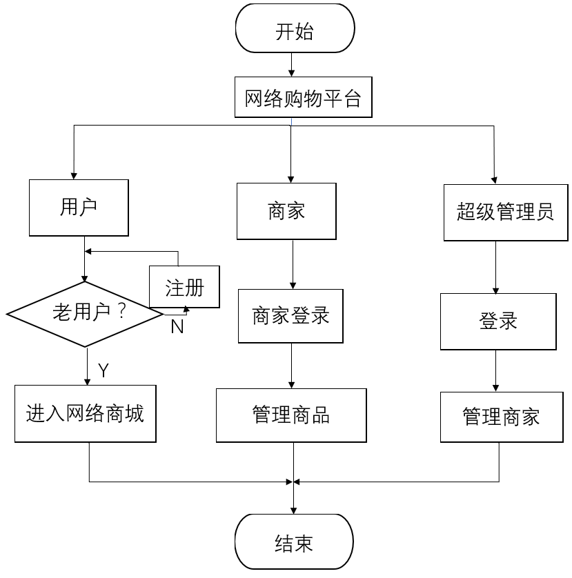 本网购平台管理系统服务对象包含用户、商家以及超级管理员,并以商家功能以及超级管理员功能为主要研究内容。
