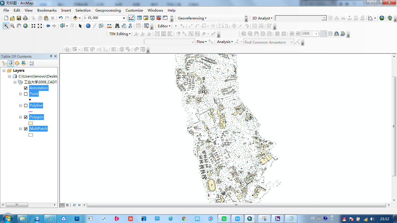(2)从现如今校园的规划布局可以了解到,校园中还有大片的荒地不曾利用,若以后学校要在此基础上动工新建工程或者改变现有的规划布局,该校园空间数据库可以为今后的建筑规划工程提供有力的数据支持。