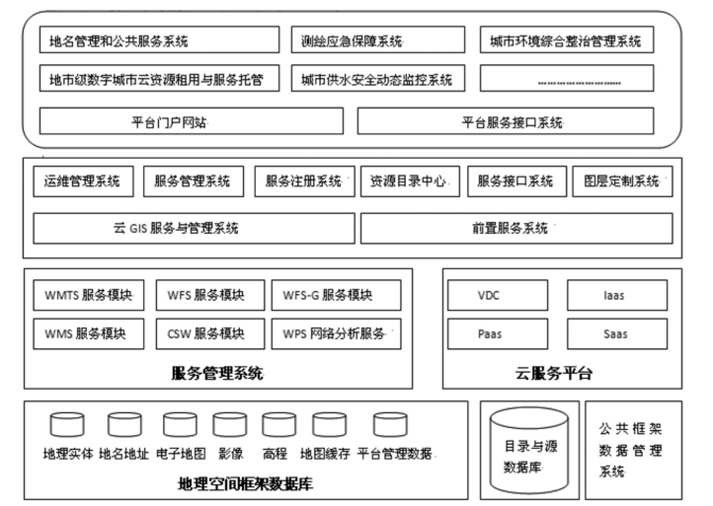 云GIS是基于云计算的产物,而云计算则是分布式计算、并行计算和网络计算共同结合的较为高效的计算模式。云计算是大型计算机和客户端-服务器之后的另一次巨大变革,拥有随需应变的自助服务,可以供各种网络终端访问而无需顾忌时间地点,资源可供多人共享,服务部署灵活方便,同时又可检测和控制。云计算阐述了一种依托于现代网络的新的软硬件计算租赁方式,一般其提供的服务都是经由网络具有弹性空间且与实体资源有较大差异的 [1]。