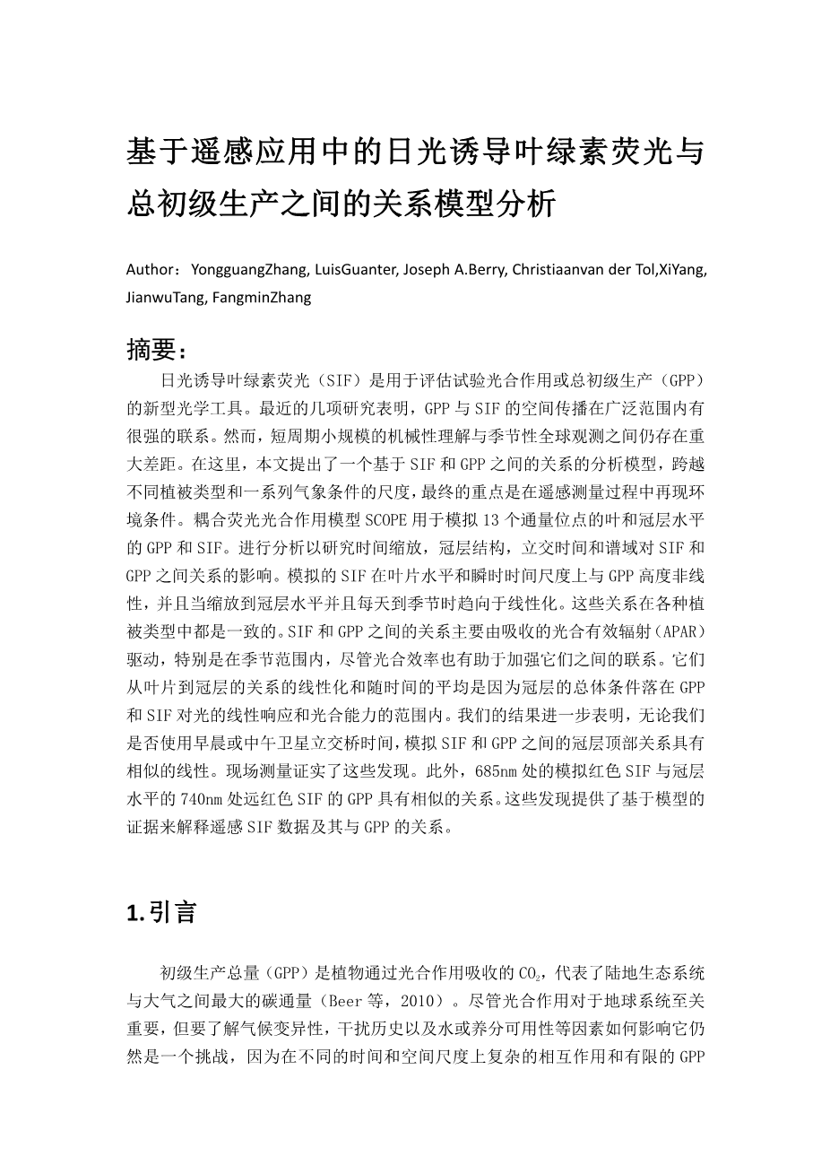 基于多源遥感数据的植被GPP估算方法研究外文翻译资料 2021-12-13 22:45:41 英语原文共 25 页 英语原文共 12 页资料编号:[5380] 您需要先支付 20元 才能查看全部内容!立即支付 ﰊ PREVIOUS NEXT ﰋ 您可能感兴趣的文章 移动点的时间-地理密度估计对象外文翻译资料 归一化植被指数NDVI响应可以指示由水生植物主导的漫滩湿地的有效洪水程度吗?外文翻译资料 基于遗传算法的径流区划模型的获取外文翻译资料 基于遥感影像的汶川地震滑坡灾情提取毕业论文 汶川地震滑坡危害评估系统开发毕业论文 基于夜间灯光遥感数据的城市建成区提取毕业论文 合肥市城市变迁的遥感监测毕业论文 南京市教育资源查询系统毕业论文 3D打印技术探讨毕业论文 汽车售后服务信息管理系统的设计毕业论文