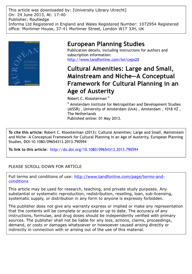 摘要:文化规划一直是许多决策者的重要议程。从某方面来说,它已经成为一种指标,用来重建社区甚至整个城市,并作为一种提高地方质量的手段来吸引高技能工人。随着当前公共开支的紧缩,问题出现了文化规划举措将发生什么,以及它们将保留什么范围。为了探索在这个节俭的时代文化规划可能发生的事情,我们提出了基于商业模式和两个基本维度的文化便利设施的简明类型学。第一个维度涉及供应方面,即文化设施的供应规模。第二个维度,涉及需求方面,即市场。每种类型都与特定的地点模式、地点质量的影响和资金配置相关联。我们预计,预算削减将对小规模、面向利基的文化设施有较大的影响,这对地方城市文化设施建设的质量评价至关重要。我们还期望进一步实现商业化和商品化的趋势,扭转到大规模、利基导向的文化设施的真实性。