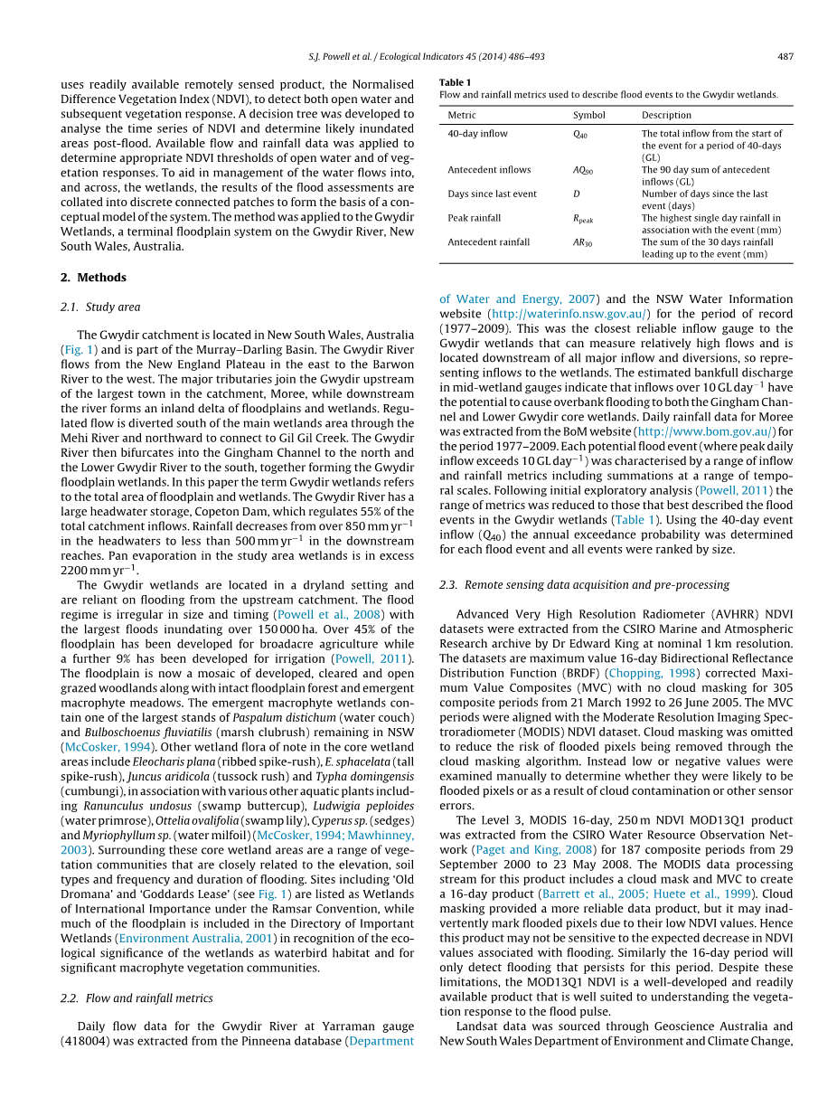 表1 流量和降雨指标用于描述Gwydir湿地的洪水事件