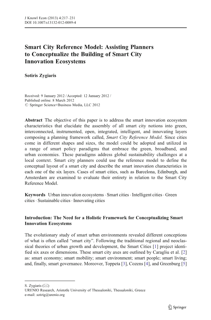 文献回顾使智能城市的尺寸组装成一个整体的概念模型。研究创新的城市政策范式相关的绿色城市,连接生活,智能社区,创新生态系统,环境和社会可持续性与城市发展的问题。