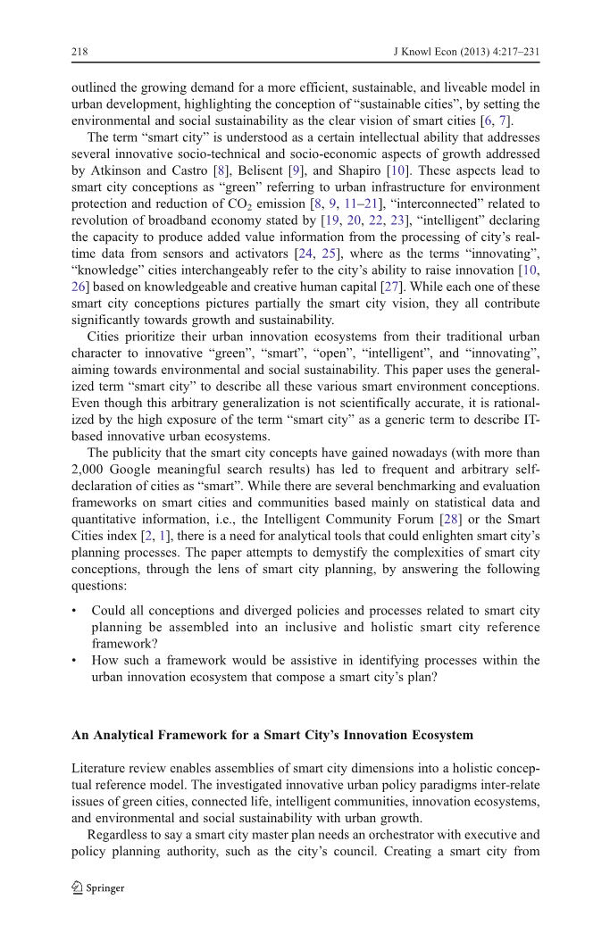 无论如何,一个智能城市总体规划需要一个具有行政和政策规划权力的协调者,例如城市委员会。创建一个智能城市从218 J Knowl Econ(2013)4:217-231 scratch需要领导监督计划。在智能城市(即巴塞罗那)总体规划中,这种自上而下的方法必须与建设性地将当地利益相关者(即阿姆斯特丹)联系起来,将中央城市监测与自下而上的社区参与结合起来的混合模式相结合。