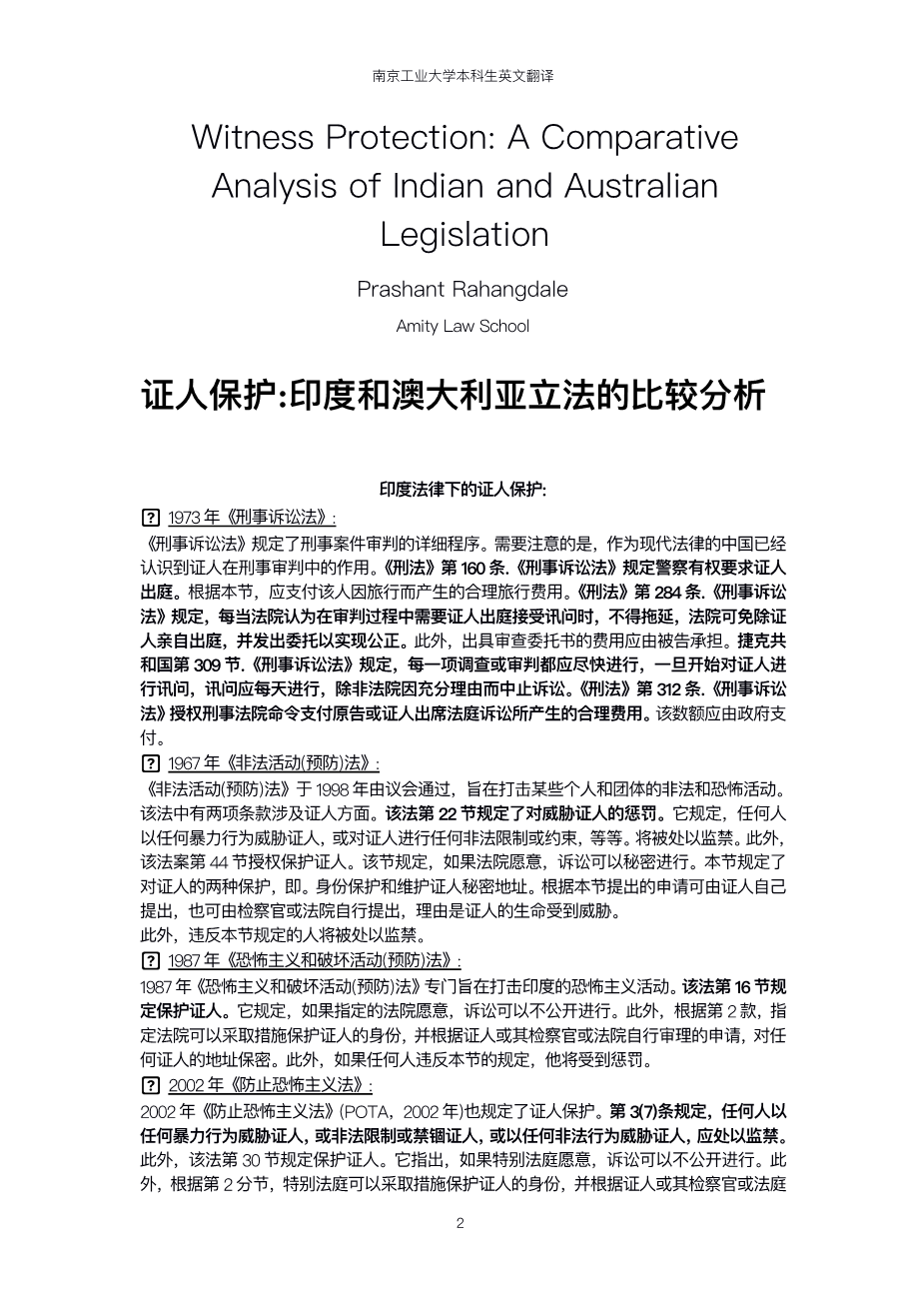 证人保护:印度和澳大利亚立法的比较分析外文翻译资料