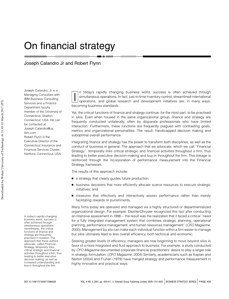 经营策略系列 关于财务战略外文翻译资料