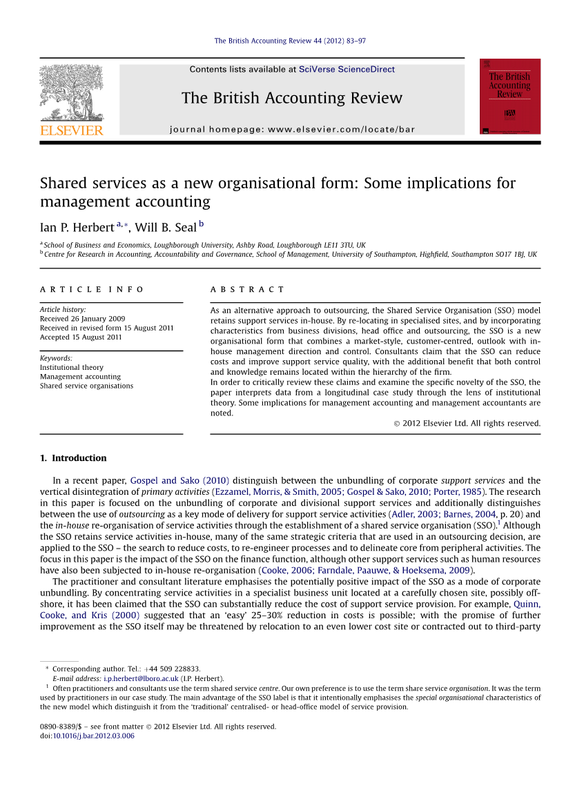 改变并且“使用的外包越多,组织就越有可能对其进行重大改变“管理会计系统”(2005年,第437页)。但是,可以为SSO提出类似的声明吗?例如,可以争论SSO方法只代表另一个总部驱动的集中化项目(ACCA,2009);只是一个变种传统的分层,多部门公司(Chandler,1962),其中一个“按钮式”管理(Thrift,2005)不愿意承诺组织支持功能的真正新方法。