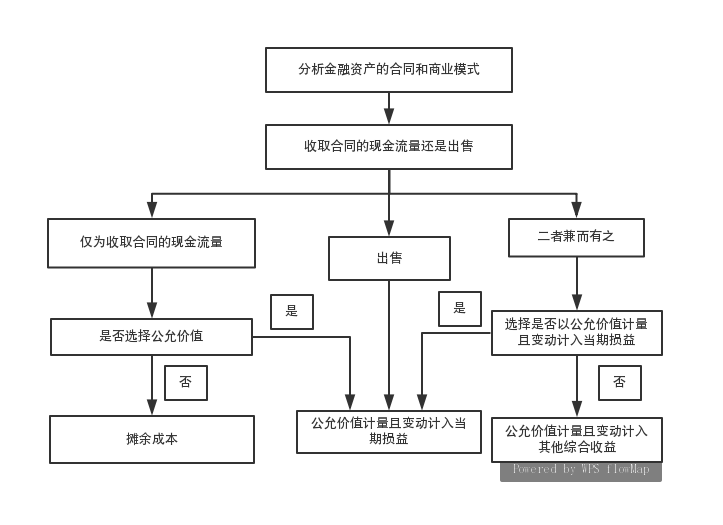 以金融资产的合同和商业模式为基础,根据企业未来是选择收取合同的现金流量还是出售,将金融资产进行三种分类。具体金融资产分类如图2.1所示:
