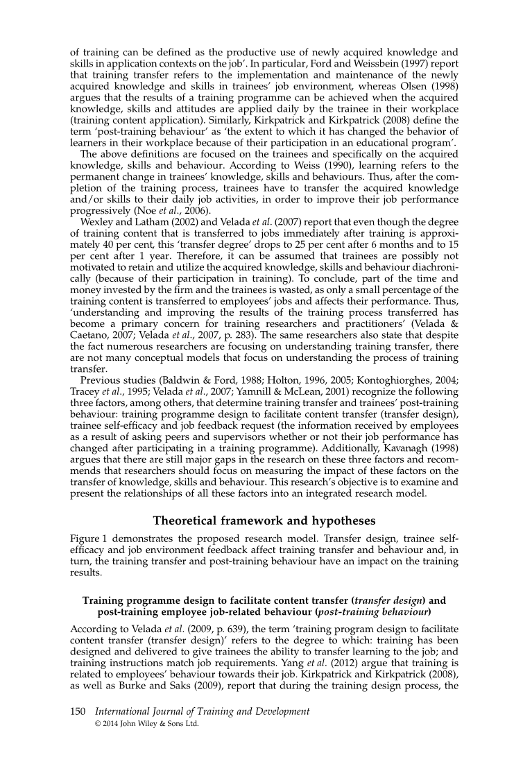 根据Velada等人,“促进内容转化(转化设计)的培训计划设计”一词是指在何种程度上:设计和交付培训,使学员能够将学习转化到工作中;和训练指导符合工作要求。杨等(2012)认为培训与员工的工作行为有关。Kirkpatrick和Kirkpatrick(2008)以及Burke和Saks(2009)都报告说,在培训设计过程中,