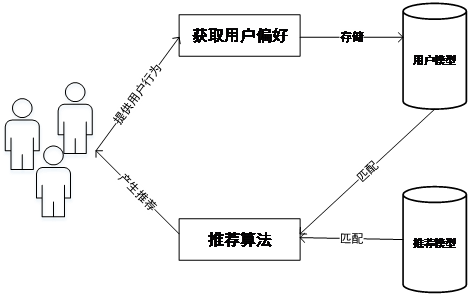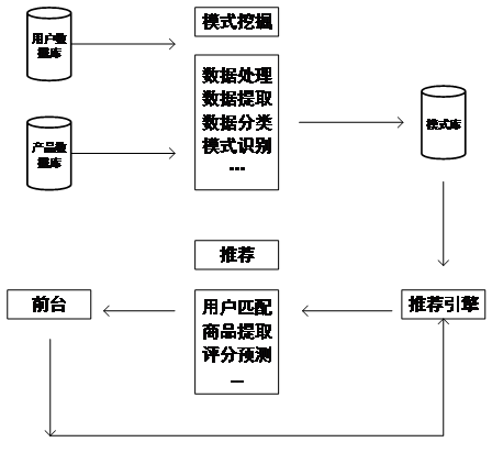 在上述流程中,其模型关键在于对用户日志的存储和推荐的算法。无论推荐系统如何调整,这两个模块都是必须的。其中挖掘模块负责挖掘用户和商品的特点,进行模式挖掘和识别,将识别的结果存储在数据库中,推荐模块则根据不同的场景为用户生成推荐列表[4]。