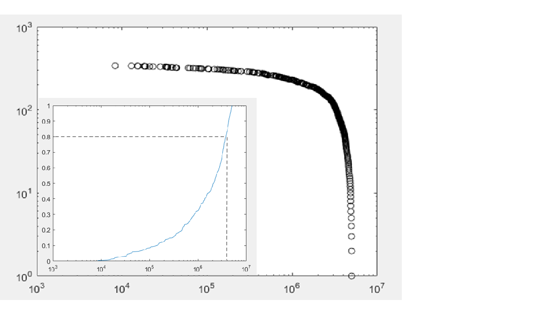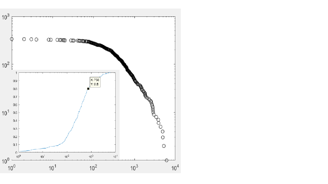 幂律的概念,来源于上个世纪科学家们的一个实验。在实验中,他们统计了英语中各个单词的使用频率,然后发现人们日常生活中真正使用的仅为少量核心词汇,很多单词并不常用,单词的使用频率与它被优先使用的概率保持着一个常数次幂的反比关系。幂律也常被解释为马太效应(富者越富,穷者越穷)或者80/20定律,两个变量的变化存在着相关关系,自变量的相对变化会导致因变量发生相应幂次的比例变化,且与初值无关。在坐标轴中,幂律分布函数的图像右半部分往往是一条无限靠近x轴却不相交的曲线,人们把它称为长尾分布。自然界有很多现象的分布都大致遵循着幂律分布,当样本数据量较多时,变量x的概率密度函数常表示为: ,而验证幂律分布一般使用双对数图,即对自变量和因变量都取对数后作图,遵循幂律分布的样本点在双对数图中呈现为直线。