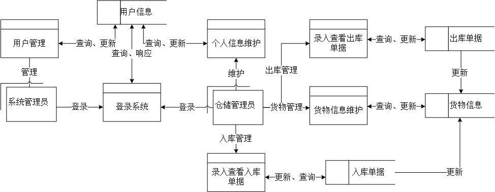 (1) 能够按照仓储管理员、系统管理员的身份设定进行用户的登录以及注销。