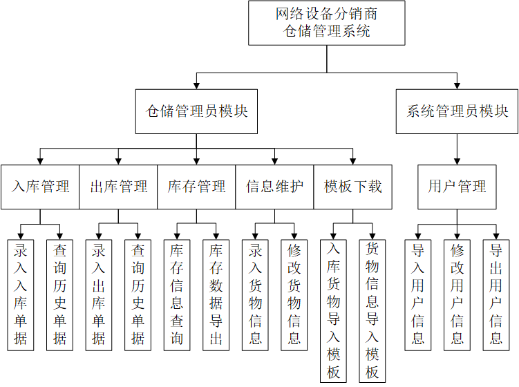 网络设备分销商仓储管理系统是针对中小企业的仓储管理平台,目的在于改进传统仓储管理的方式,降低仓储管理人员的管理难度,提升仓储管理的效率,从而在仓储管理这一环节中提高企业的业务水平从而创造更大的经济效益,为企业的长远发展奠定基本的技术保障。本文在了解该企业以往仓储管理方式的基础上,结合中小的具体情况并参考相关文献将此系统的功能需求总结为以下几点: