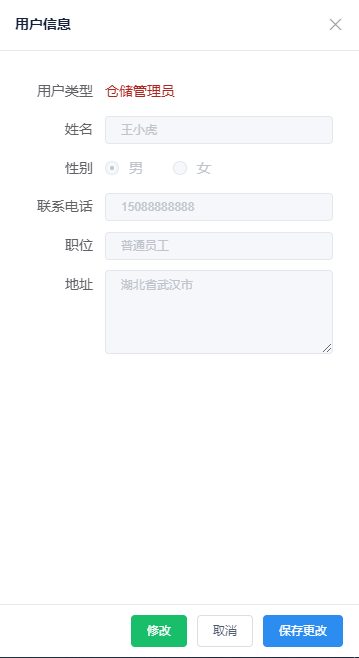 (1)系统用户信息数据。系统用户信息的数据随着系统管理员的输入、导入等操作产生,随着系统用户(包括仓储管理员和系统管理员)的查看而呈现,随着系统管理员的修改删除而发生改变。