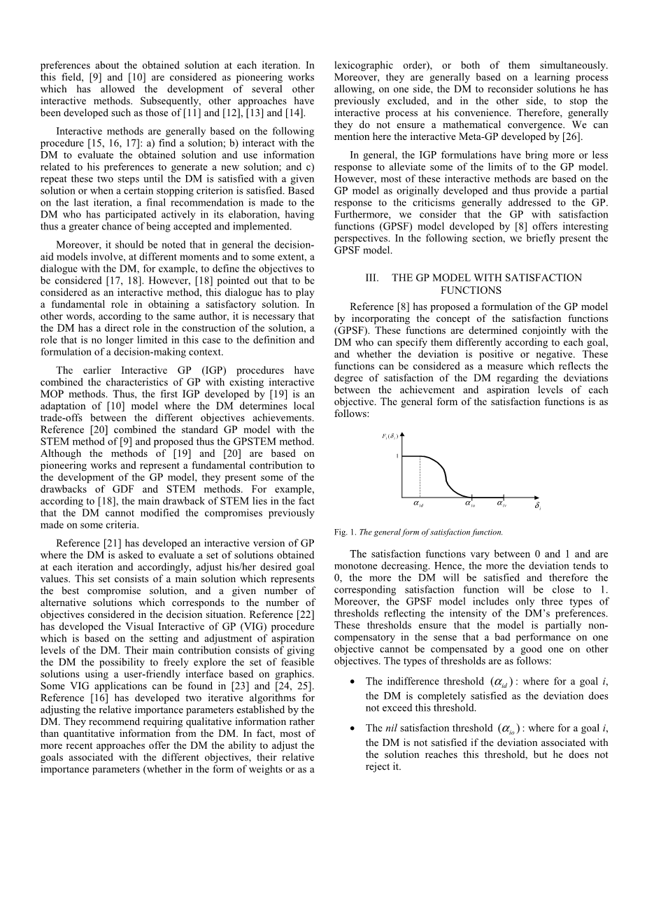 在下一节中,我们将简要回顾主要的交互式GP(IGP)模型。第三部分介绍了由[8]开发的具有满意度函数(GPF)的GP。在第四部分中,我们提出了GPSF的交互式版本,它允许DM更好地识别决策背景并明确地揭示他的偏好。