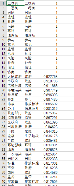 领域词表可以用于文本挖掘的特征选取和权重确定,常用方法有TF−IDF、World Net。对于城市垃圾危机领域来说尚无法通过基于语义的方法获得数据,本研究则开发了初级的城市垃圾危机领域词表。领域词表的构建,有利于实现文本挖掘的特征选取、权重确定、有效分词。