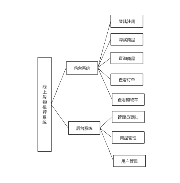 整个系统由线上购物(用户使用)和管理后台(管理员使用)两部分组成,系统开发完成后计划实现下列功能及效果:
