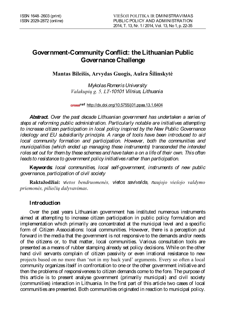 摘要:在过去十年中,立陶宛政府采取了一系列改革公共行政的步骤。特别值得得注意的是,在新公共治理意识形态和欧盟辅助原则的启发下,试图增加公民参与地方政策的举措。为协助地方社区的形成和参与,已经采用了一系列工具。然而,社区和市政当局(最终管理这些文书)都超越了这些计划为他们规定的预期作用,并开始了自己的生活。这往往导致对政府政策倡议的抵制,而不是参与。