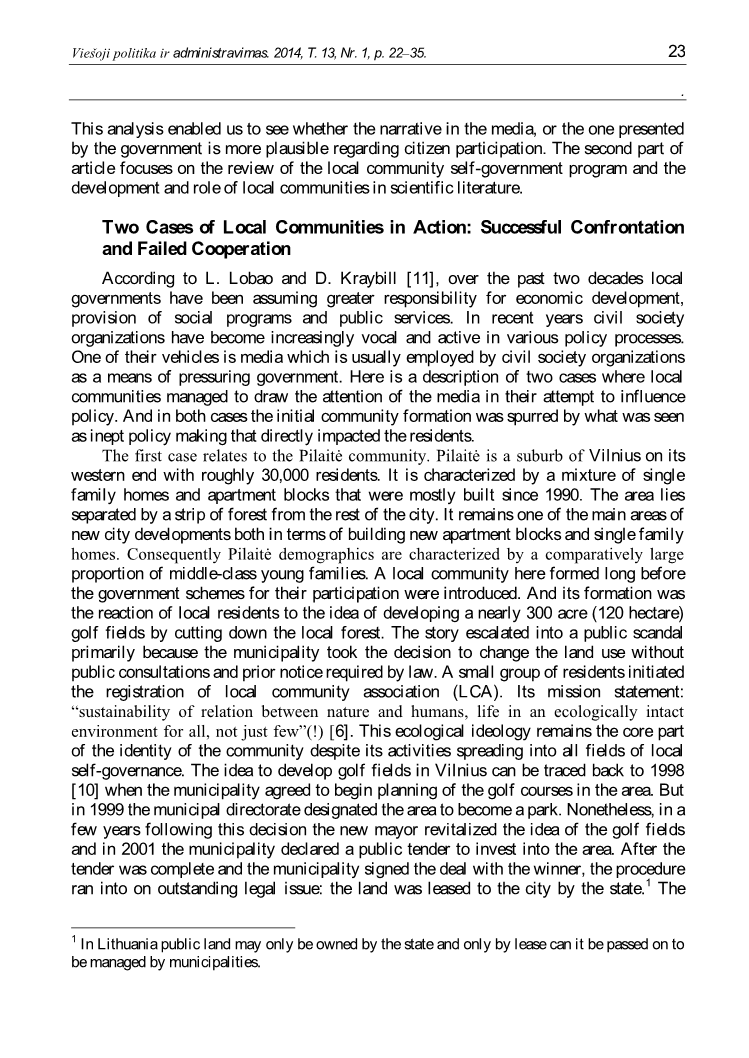 第一个案件涉及皮莱特社区。皮莱特是维尔纽斯的一个郊区,位于其西端,大约有3万居民。它的特点是单一家庭住宅和公寓街区的混合,这些建筑大多是1990年以来建造的。这个地区被一片森林与城市的其他部分隔开。它仍然是新城市发展的主要领域之一,无论是在建造新的公寓楼还是单身家庭住宅方面。因此,皮莱特的人口特征是中产阶级年轻家庭的比例相对较大。在政府推行参与计划之前很久,这里就形成了一个地方社区。它的形成是当地居民对通过砍伐当地森林开发近300英亩(120公顷)高尔夫球场的计划的反应。这个故事升级为公共丑闻,主要是因为市政当局决定改变土地使用,而没有进行公开协商和事先通知法律要求。一小部分居民发起了当地社区协会(LCA)的注册。其使命声明:“自然与人类关系的可持续性,在生态完整的环境中为所有人而不仅仅是少数人生活!”。这种生态意识形态仍然是社区认同的核心部分,尽管其活动已扩展到地方自治的所有领域。开发维尔纽斯高尔夫球场的想法可以追溯到1998年,市政府同意开始规划该地区的高尔夫球场。但在1999年,市政局指定该地区成为一个公园。然而,在这一决定作出后的几年里,新市长重燃了建设高尔夫球场的想法,2001年,市政府宣布公开招标,向该地区投资。在投标完成后,市政府与获胜者签署了协议。程序就悬而未决的法律问题进行了讨论:土地由国家租赁给城市的,租赁森林的决定没有设想将其用作高尔夫球场。此外,开发商和市政当局商定的详细面积计划包括不允许在森林、公园或高尔夫球场建造住宅建筑。