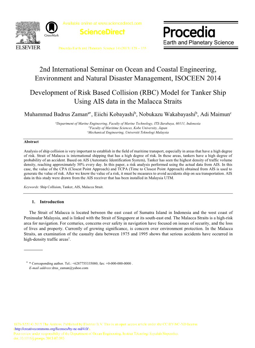 关键词:船舶碰撞;油轮;自动识别系统;马六甲海峡