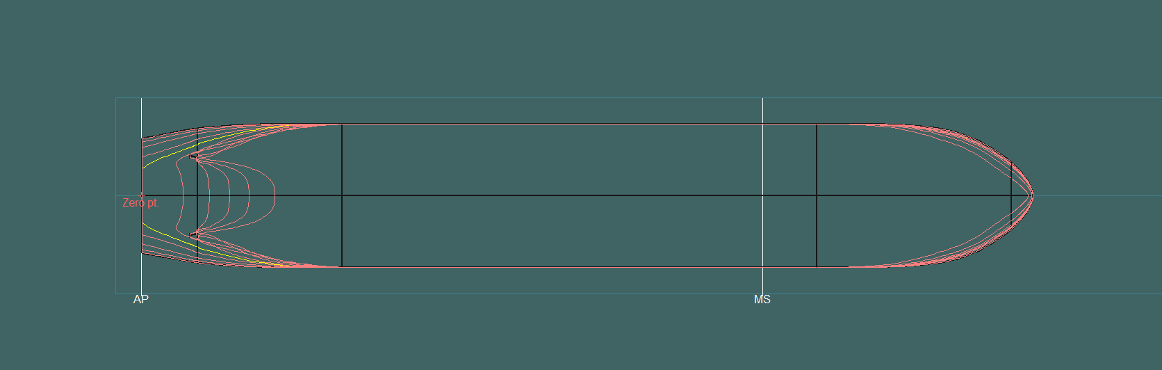 本此设计是按照优秀母型船进行设计,改造。利用maxsurf,犀牛等软件进行母型船的型线设计,然后在修改成设计船舶。再依照规范对设计船的设备,船员等进行设计和安排。在根据规范进行设计船的校核。