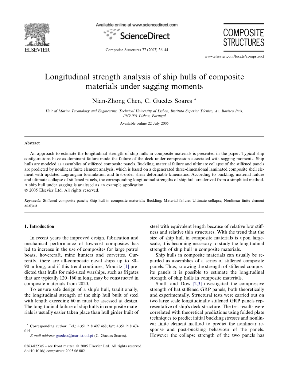 guedess@mar.ist.utl.pt(C. Guedes Soares)。0263-8223 / $ - see front matter 2005 Elsevier Ltd.保留所有权利。doi:10.1016 / j.compstruct.2005.06.002