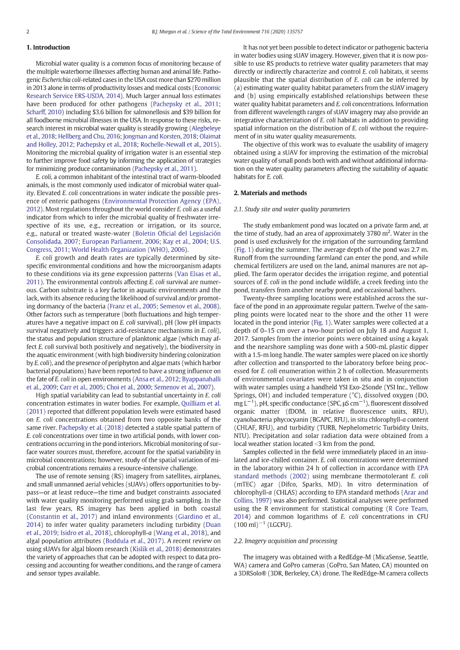 这项工作的目的是评估使用sUAV获得的图像的可用性,在无论是否提供其他影响大肠杆菌水环境栖息地适宜性的水质参数信息的情况下改善对小池塘微生物水质的估计。