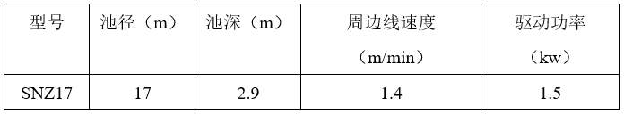 池径,水深为2.92m,选用SNZ型中心传动浓缩机,参数如下: