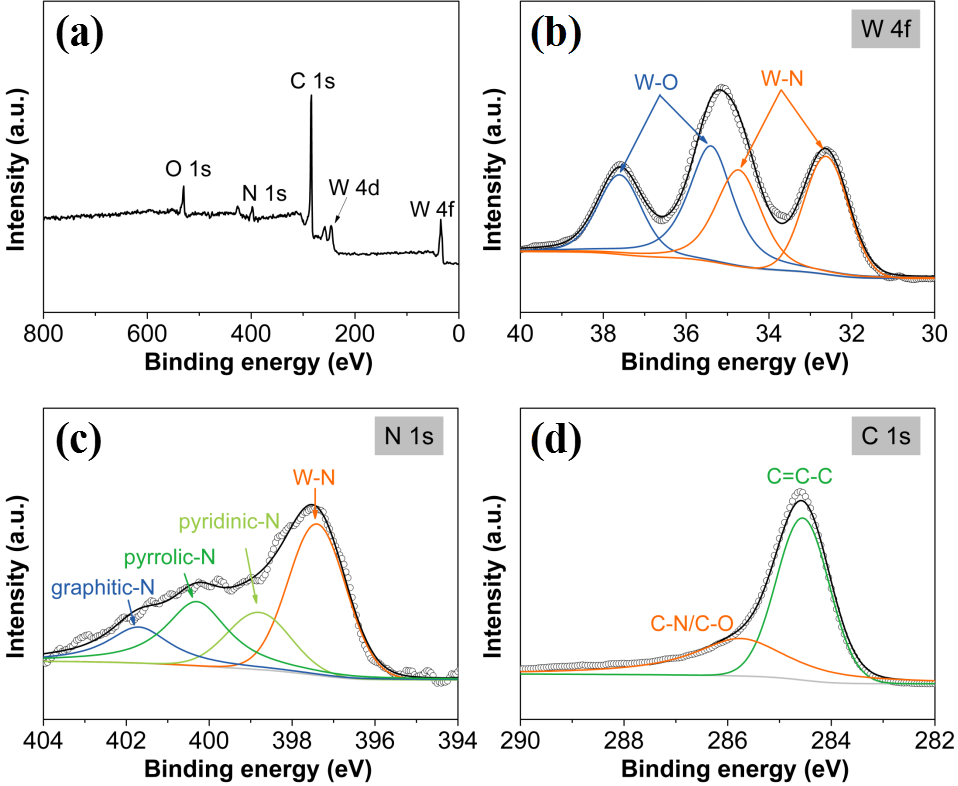 In recent years, molybdenum-based materials as the anode materials of lithium-ion batteries have attracted great research attention for their large theoretical capacity. Tungsten belongs to the same ⅥB family as molybdenum, thus having the same outermost electrons and similar electrochemical properties. Therefore, here we have focused on tungsten nitride as the anode material of lithium-ion batteries. It is difficult to meet the needs of large capacity in modern society, there is a large practical potential that the tungsten nitride material can make it because of its high theoretical capacity. Actually, it is extremely hard to obtain a high actual capacity. The main challenge of this paper is to improve the specific capacity of the tungsten nitride by compositing it with porous carbon. However, the volume effect is serious during the long charging and discharging process, which results in irreversible damage to its structure and poor cycling stability. Carbon is so excellent a conductive material that we can enhance the conductivity by combining it with nanostructured tungsten nitride m, and the volume change can be buffered during the Li-ion insertion/extraction process, thus increasing the cycling stability of the material.