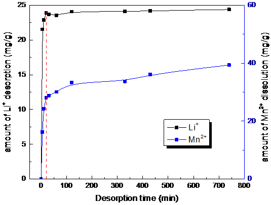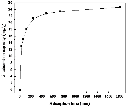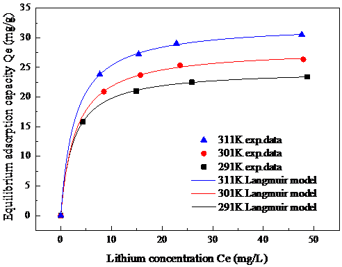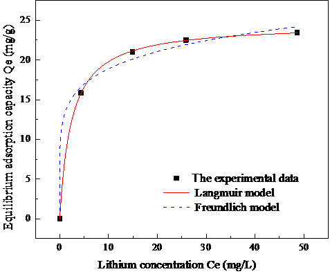 The results of the adsorption of λ-MnO2 ion sieve shows that the λ-MnO2 ion sieve reaches the adsorption equilibrium until 12h later and the adsorption capacity is 23.4 mg/g, the adsorption in the alkaline environment is the best. The adsorption is mainly chemical adsorption, with uniform adsorption activity and monolayer adsorption and λ-MnO2 ion sieve lithium is a spontaneous endothermic process, whose selectivity for Li is greater than H and the maximum adsorption capacity of 6.256 mg/G, especially magnesium and lithium, the separation factor is 1270.67. When the desorption time is 0.5h, the desorption effect of ion sieve is the best. At this time, the desorption amount of Li reaches 97% of the maximum adsorption capacity, dissolution of Mn2 is only 4% then. It can be seen that the lithium ion with λ-MnO2 ion sieve has a high adsorption capacity and can be used for cyclic adsorption.