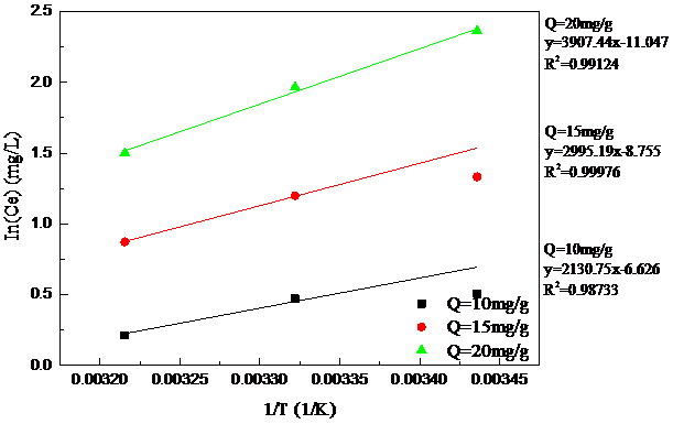 Under different experimental conditions, such as pH, different adsorption time, different desorption time and different pickling concentration, the adsorption capacity of the lithium ion sieves λ-MnO2, which were treated by acid-water treatment with KMnO4, LiCl · H2O and CH3CH2OH as raw materials, were introduced in this paper. And the static adsorption kinetics, isothermal experiment and thermodynamic behavior of λ-MnO2 ion sieve were investigated. Then the optimum adsorption conditions were obtained by analyzing the experimental data.