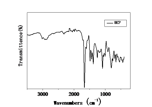 The hyper crosslinked polymers material with high specific surface area can be successfully synthesized by using 2o 3-pyridine dicarboxylic anhydride, biphenyl as monomers, chlorosulfonic acid as catalyst and triformaldehyde as crosslinking agent, and the material has good thermal stability. It is found that the material has a unique carrier effect by supporting Pd. The synthesis of dibenzofuran by oxidative coupling of diphenyl ether with intramolecular dehydrogenation has the advantages of mild conditions, easy availability of raw materials and high yield. Compared with the current reported Pd2 as catalytic active center, this paper proposes Pd0 as active center.
